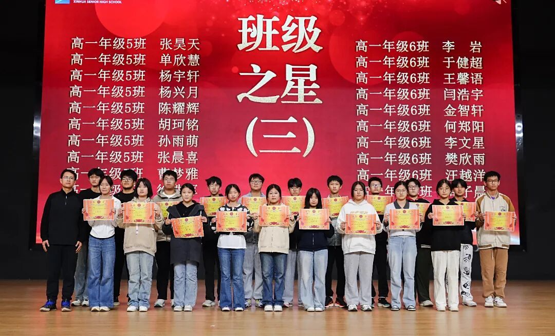 此次表彰大会,是初秋耕耘的回响,更是青春远征的战鼓。从榜样的荣光里,我们见少年向上之姿;从师长的嘱托中,我们立征程前行之向。愿高一年级全体同学怀“少年心事当拏云”之豪情,践“不待扬鞭自奋蹄”之笃行,用汗水浇灌收获,用奋斗书写精彩,在新华校园中绽放属于自己的青春光芒!