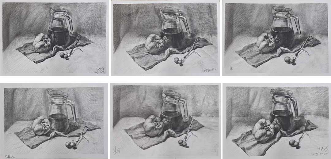 光影与线条交织的画室里,时间仿佛拥有了另一种流速——慢到能捕捉每一道轮廓的呼吸,快到能追上灵感掠过纸面的轨迹。当晨光为摊开的画纸镀上温度,当碳粉在指间化作流动的韵律,这群年轻的眼睛正透过黑白灰的层次,与万物进行着安静的对话。他们用铅笔丈量世界,用明暗书写内心,在素描写生的往复中,不仅勾勒着物体的形貌,更描摹着自我成长的轨迹。此刻,让我们驻足于这些看似朴素的黑白作品前,感受那跃动在线条里的炽热心跳,解锁这场与艺术同频共振的青春叙事。