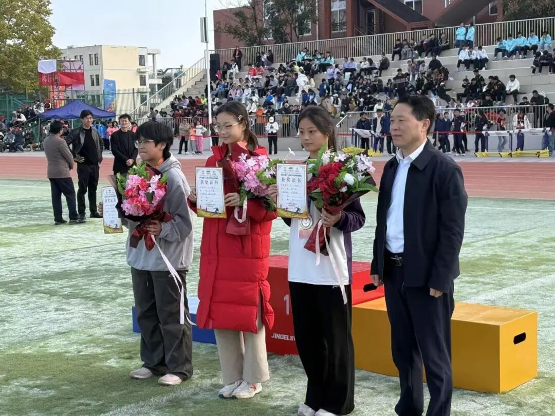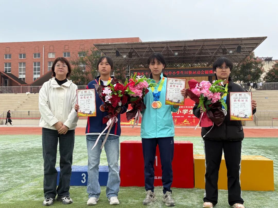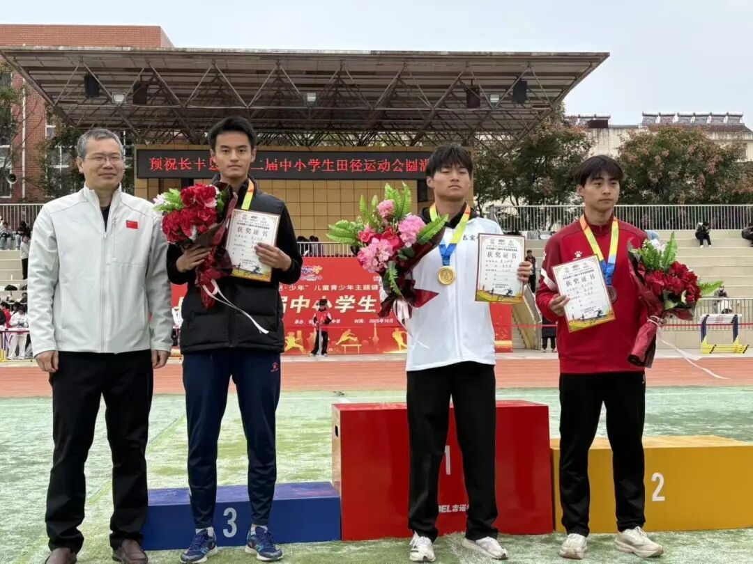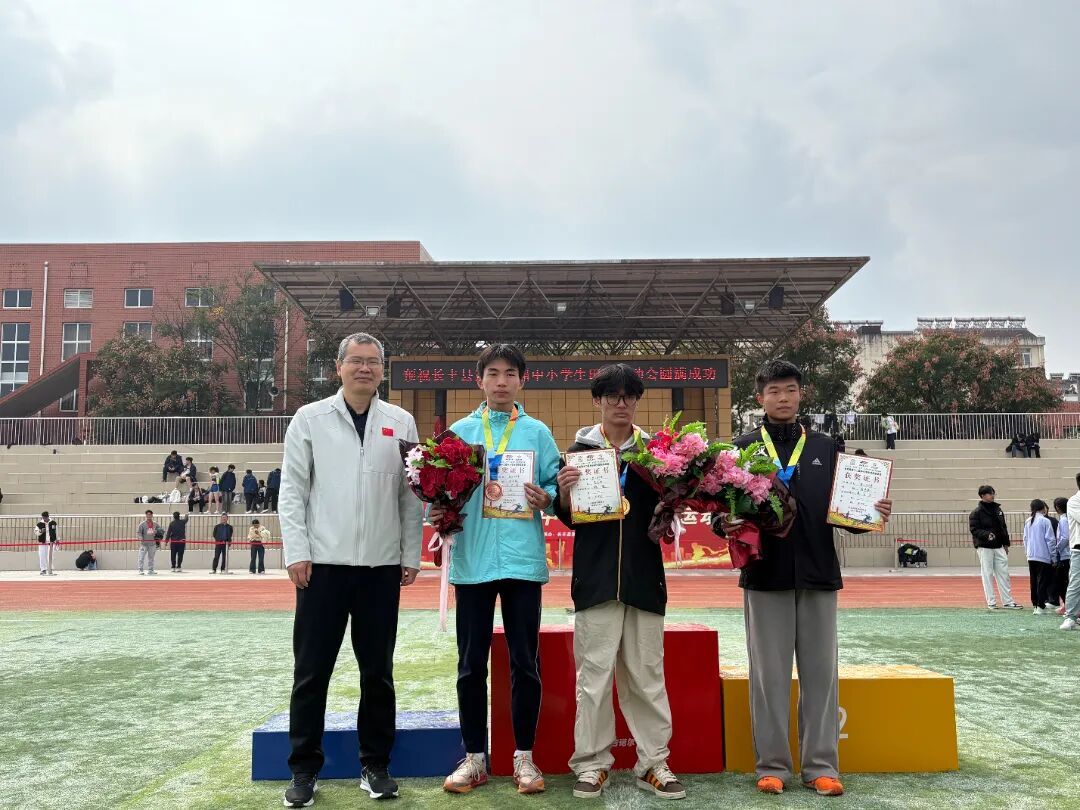 在备受瞩目的短跑项目中,董旭同学不仅在100米比赛中跑出11秒11的佳绩斩获季军,无限接近国家一级运动员水平,更在三级跳远赛场上一举夺魁,拿下宝贵的金牌。沈其鑫同学在高中男子400米比赛中一鸣惊人,以绝对优势打破长丰县纪录并夺得银牌。由李文杰、董旭、戴正阳、周子航组成的“飞人”组合,在4×100米接力比赛中配合默契,风驰电掣,以44秒10的惊人成绩再破县纪录,收获银牌,用团队的力量诠释了拼搏的意义!