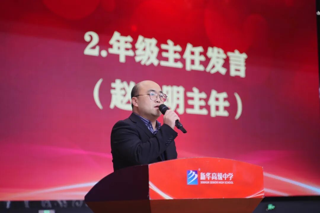 高二年级主任赵长明以数据为基、以问题为导向,展开了深度的成绩复盘与成长指引。他客观剖析了本次考试的整体态势,既肯定了高二全体师生的耕耘成效,也精准指出了学习中存在的薄弱环节。他呼吁同学们珍惜高二关键期,秉持“精耕细作”的实干精神,靶向突破短板,在知识的深耕中锤炼本领,在持续的精进中勇攀高峰。