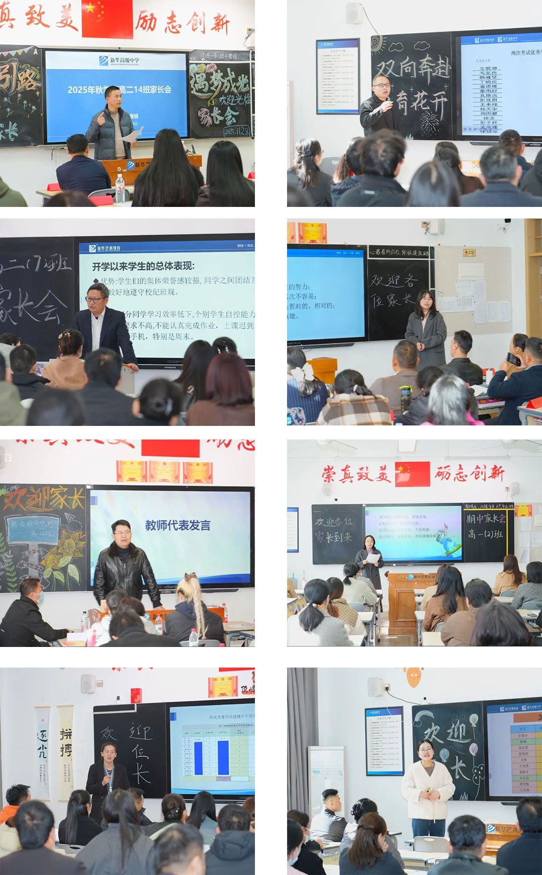 各年级各班主任认真组织班级家长会,立足班情学情,与家长展开了深入交流。班主任细致分析学生目前的学业成绩、课堂表现等情况,科任老师结合学科特点提出学习建议。家长代表踊跃分享家教心得,学生也真诚吐露成长心声与未来期许。一场真诚的对话,拉近了家校距离,也融化了亲子间的隔阂。