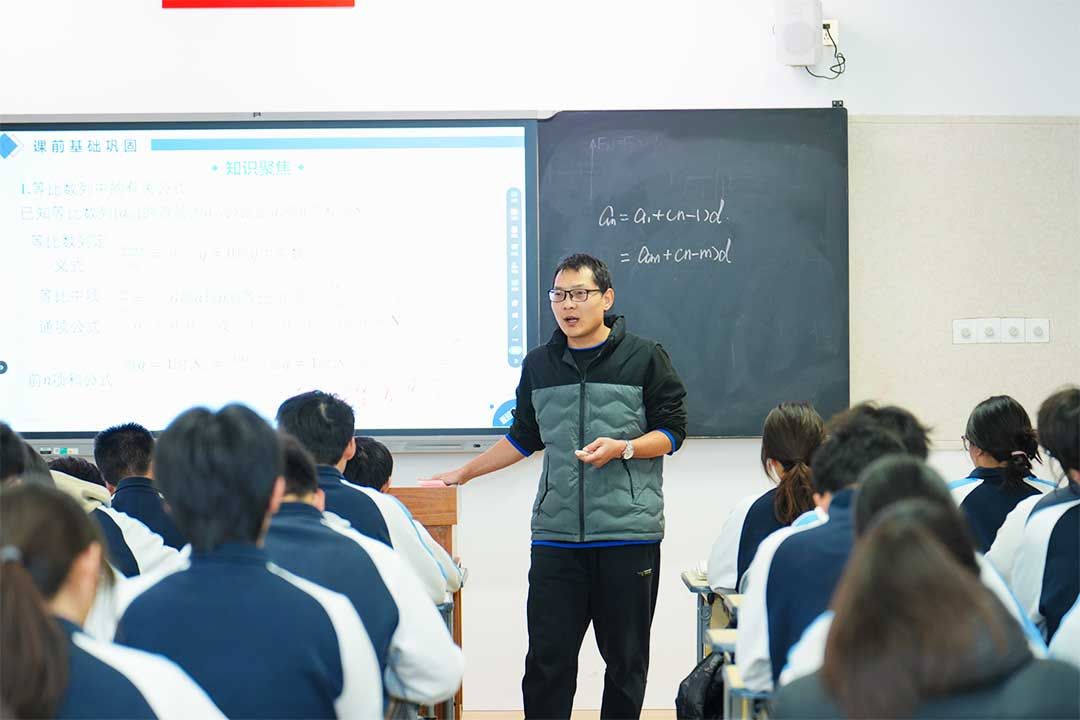 冬意渐浓,高三备考正酣。近日,我校高三年级备考组长余士跃老师开展以《等比数列前n项和公式》为主题的一轮复习公开课,他凭借扎实的专业功底与灵动的创新思维,为全体听课师生呈现了一场兼具深度与温度的数学教学盛宴,为凛冽冬日里的备考课堂注入了炽热活力。