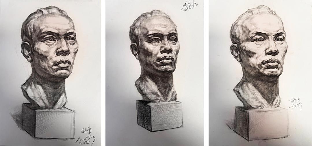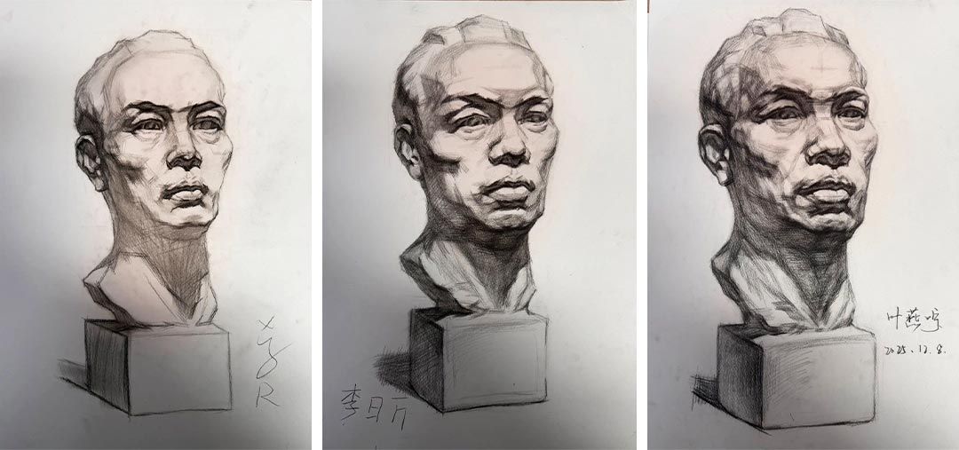 手执炭笔,我们反复丈量比例、捕捉明暗,在石膏的肌理间揣摩大师的匠心。每一笔排线,都是对 “形神兼备” 的求索;每一次修改,都是与经典的对话。石膏像写生的枯燥与专注,最终沉淀为扎实的造型功底,让我们在艺术之路上,迈出沉稳的第一步。