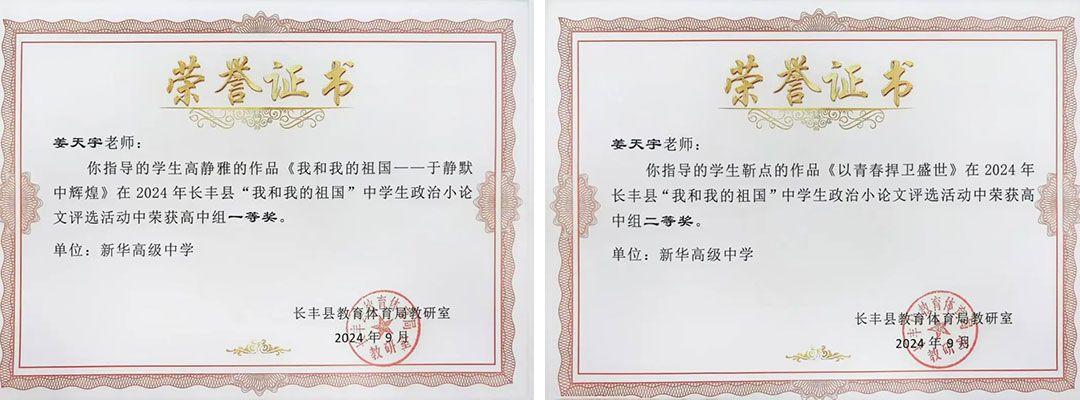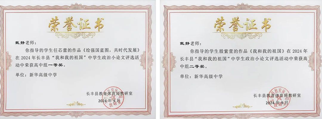 【喜报】热烈祝贺我校学子在长丰县“我和我的祖国”中学生政治小论文评比活动中喜获佳绩!
