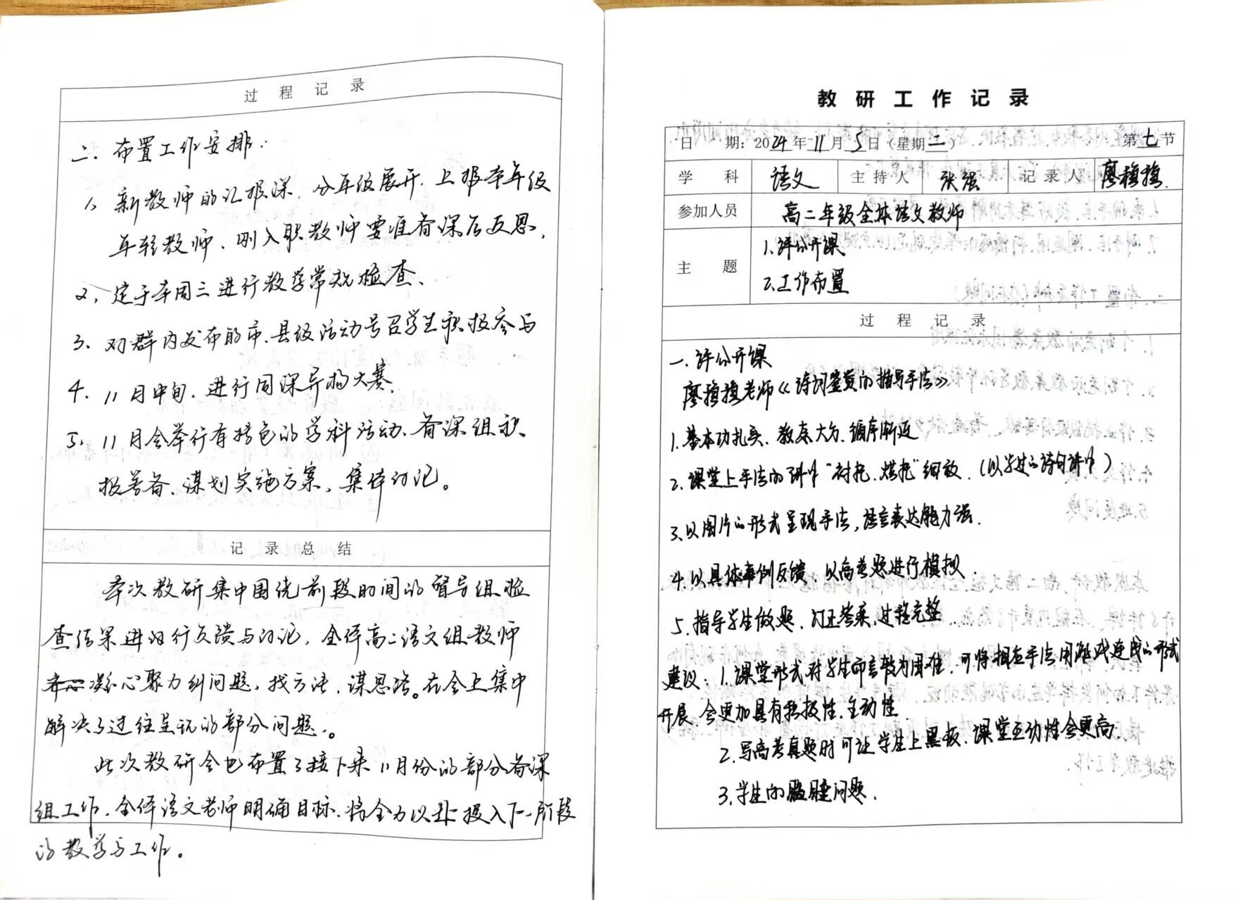 回顾过往,高二语文教研组在师德师风、团队建设、教研创新等方面取得了显著成绩;展望未来,教研组全体成员将继续以“守正创新、追求卓越”为目标,深化教育教学改革,提升教研品质,为培养具有深厚文化底蕴和创新能力的新时代人才贡献力量。我们坚信,在全体教师的共同努力下,语文教研组必将书写更加辉煌的篇章!
