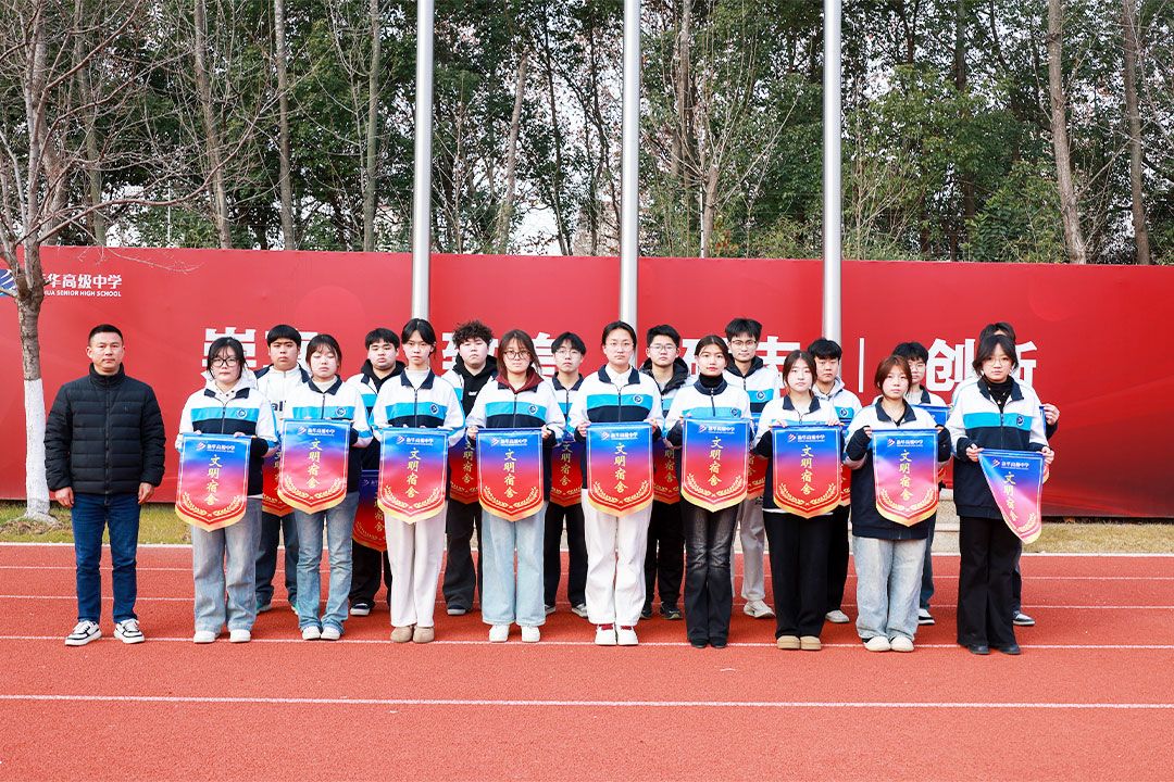 活动最后,学校对文明班级与文明宿舍进行了表彰。获奖班级与宿舍代表依次上台领奖,台下响起热烈掌声,既是对获奖集体的祝贺,也凝聚起全校师生向先进学习、共同进步的共识。