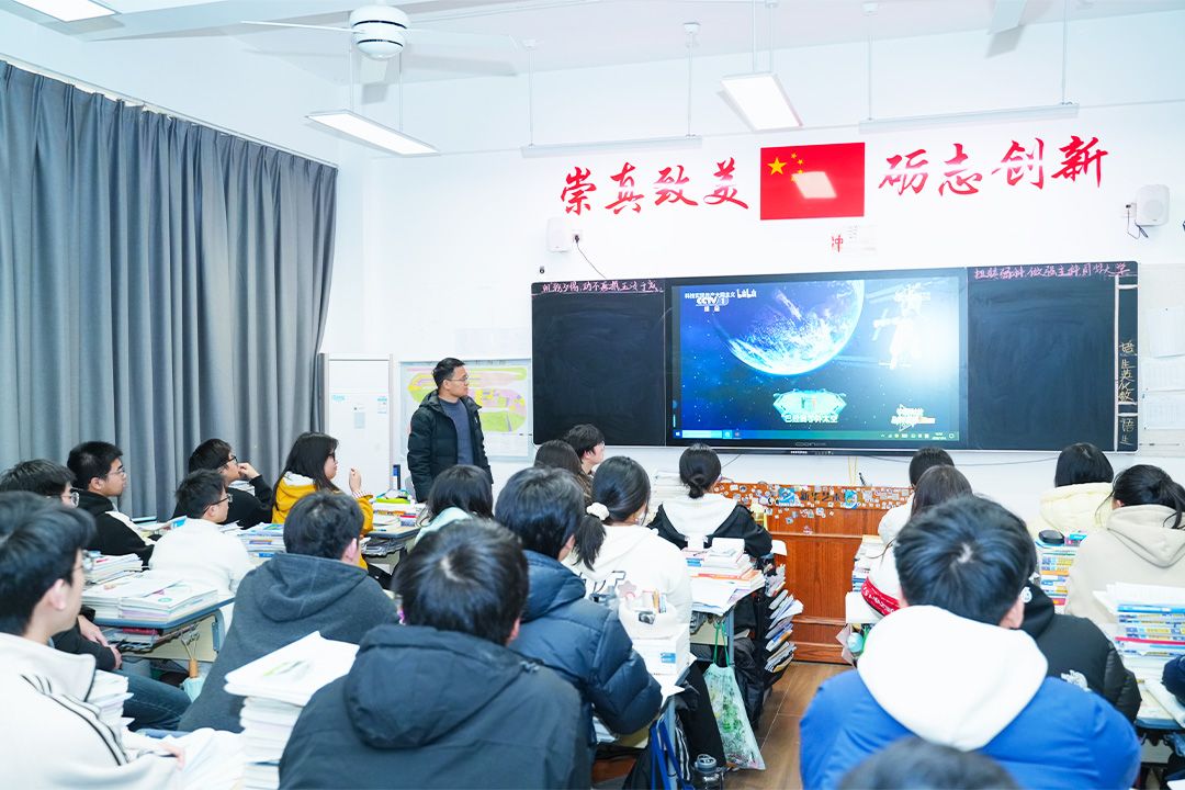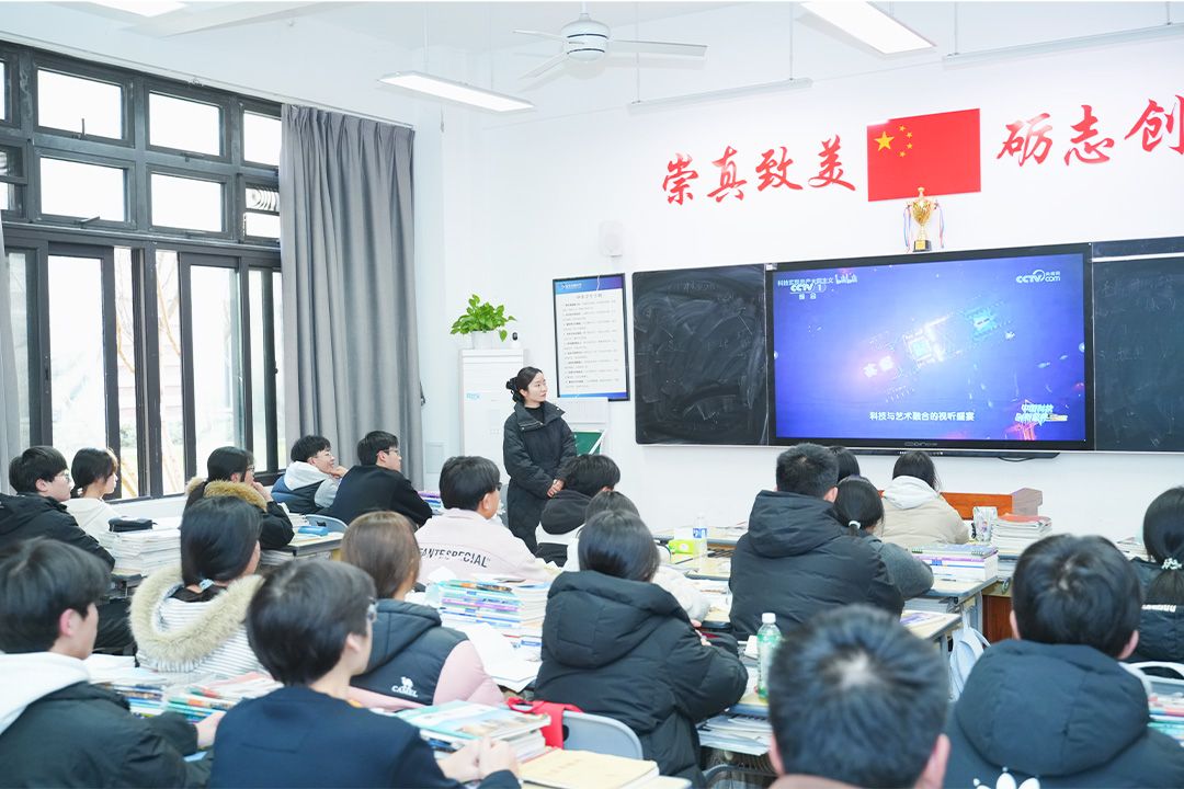 课堂之上,“视频观摩 + 互动研讨” 成为科学教育的生动载体。各学科紧扣教学内容,统筹 1-2 课时组织师生观看科晚精选片段,让前沿科技与课堂知识深度融合。物理课堂上,当 “嫦娥探月” 探测器拔地而起、精准着陆月背,月球车在月壤上留下清晰辙印的画面映入眼帘,教室里掌声雷动,惊叹声此起彼伏;化学课堂上,新型可降解塑料、清洁能源材料的研发故事娓娓道来,学生们真切窥见科技赋能绿色发展的无限可能;生物课堂上,“生物多样性保护” 专题片段,生动展现我国生态科技的硬核实力,唤起学子守护自然的责任担当;信息技术课堂上,AI机器人灵活应答、精准执行复杂任务的演示,更是让学生们沉浸在智能科技的奇妙世界,直呼大开眼界。